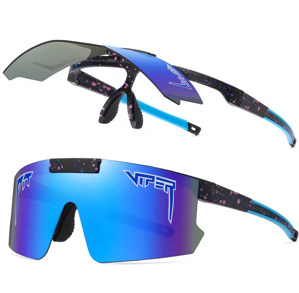 Ta stilen till nästa nivå med dessa iögonfallande och sportiga solglasögon i retrofuturistisk design – perfekta för dig som vill sticka ut, oavsett om du cruisar på stan, tränar utomhus eller vill komplettera din streetwear-look. Den breda spegellinsen i ett stycke ger en futuristisk touch och maximerar både komfort och skydd. Med en lätt men tålig båge i färgglad design och ett justerbart nässtöd sitter de bekvämt hela dagen. UV400-klassade linser skyddar effektivt mot solens strålar och är dessutom spegelbehandlade för att dämpa bländning. Finns i flera coola färgkombinationer: blå/lila med svarta bågar och rosa stänk, helsvart med gul logga, vit/röd med eldigt orange spegellins samt lila/grön med turkosblå detaljer.