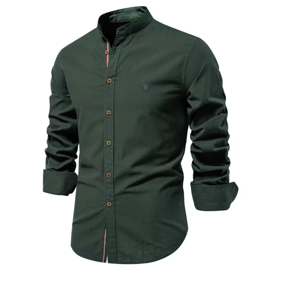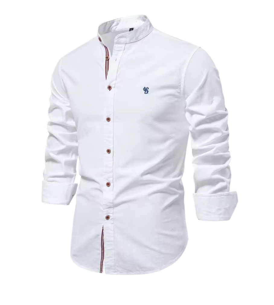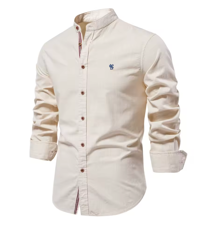 Den perfekta kombinationen av elegans och avslappnad stil. Denna skjorta med ståkrage (kinakrage) är ett måste i varje modern mans garderob. Med sin välsittande passform, trendiga design och stilrena knappar passar den lika bra till jobbet som till middag eller fest.