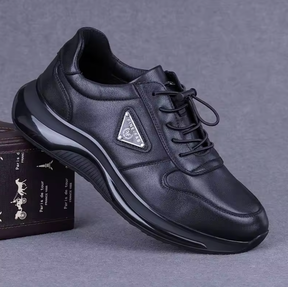 Svarta Sneakers i Läderlook – Stilren Lyx med Sportig Känsla