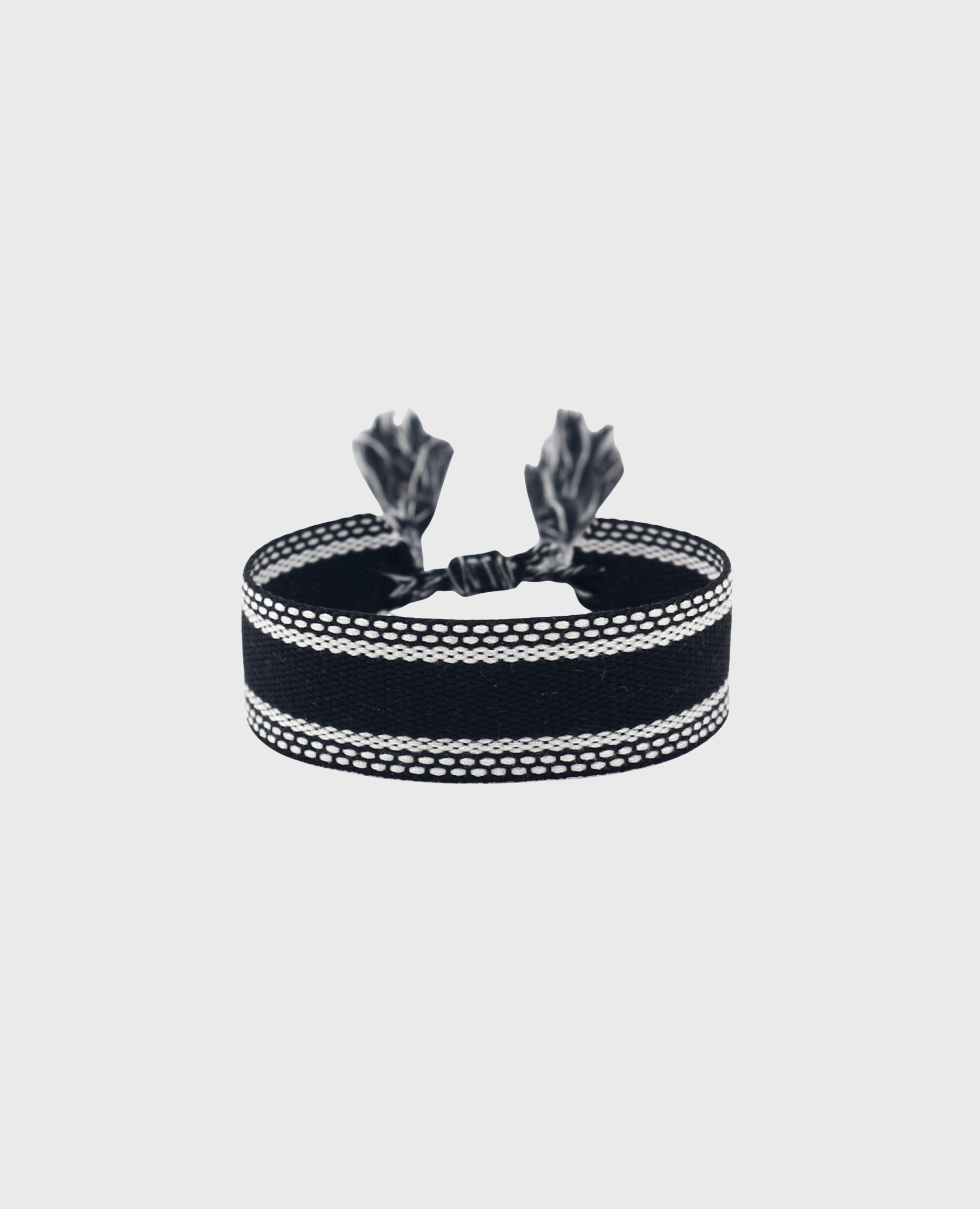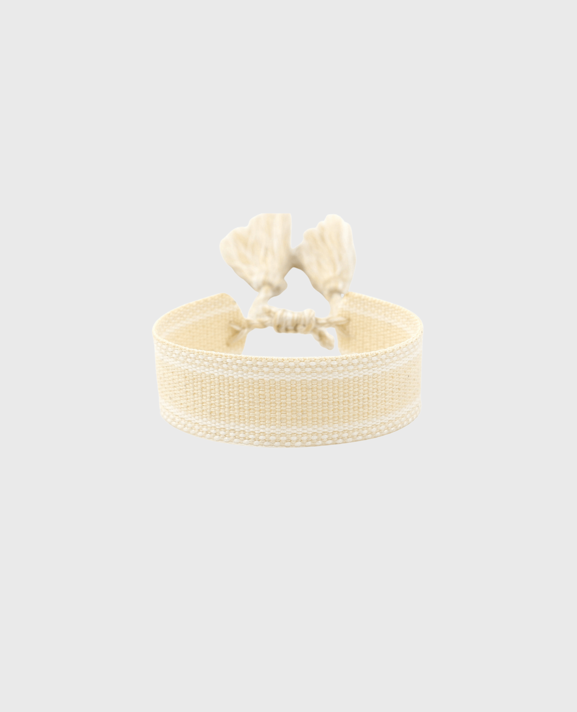 Unisex armband med flätad snodd, randigt mönster och tofsar. Gjort i snöre med bohemisk touch – finns i flera färger.