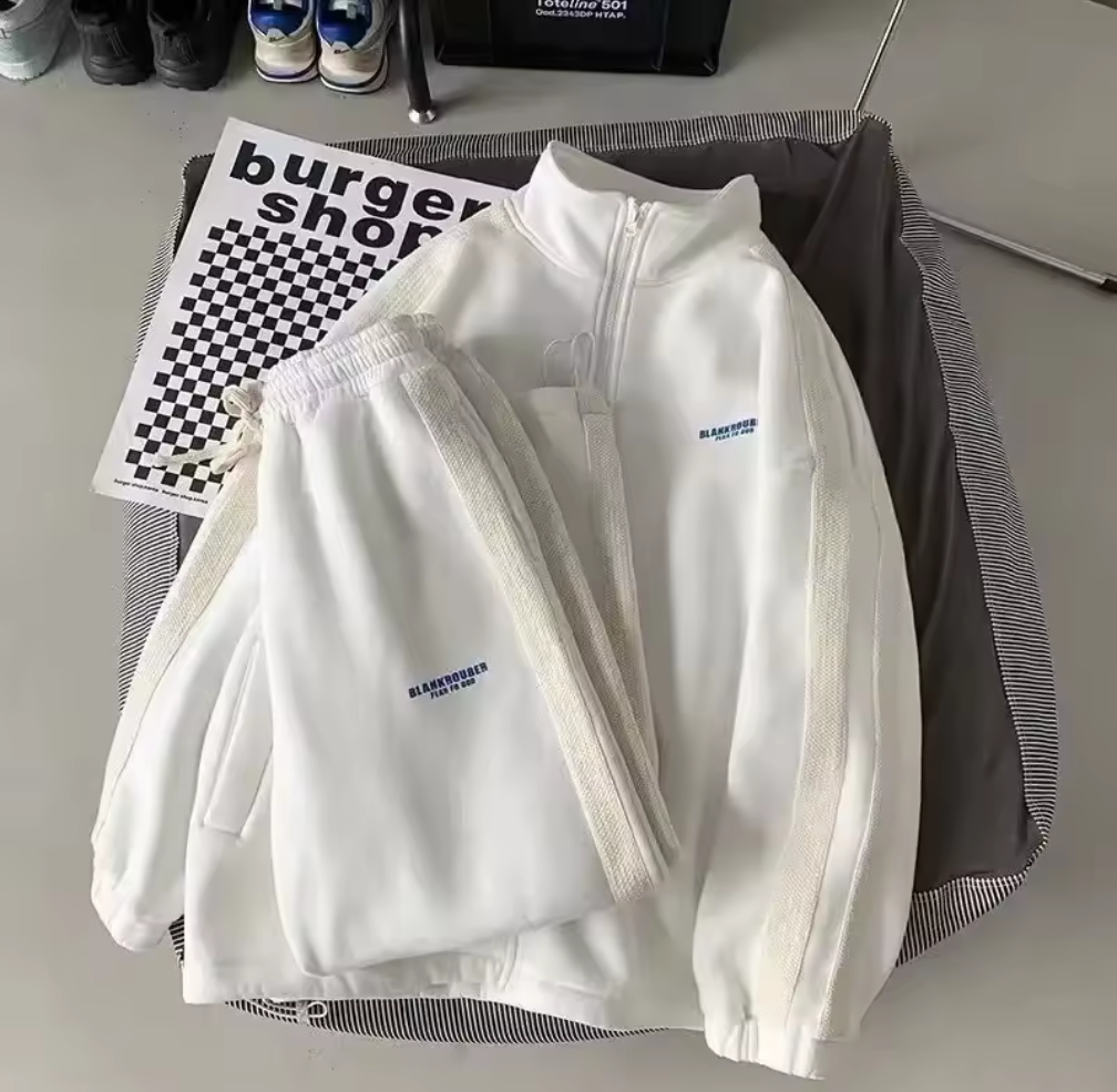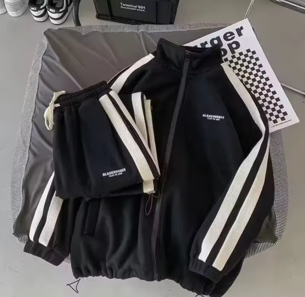 Kliv in i komfort och stil med detta tvådelade träningsset för herr – designat för både avslappnade dagar och sportiga aktiviteter. Setet består av en zip-jacka med hög krage och matchande byxor med dragsko, båda prydda med kontrasterande revärer längs ärmar och ben för en sportig look. Det mjuka, stretchiga materialet ger en följsam passform med hög komfort, perfekt för allt från gymmet till en dag på stan.