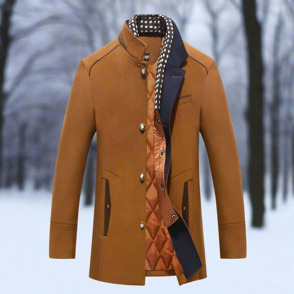 Herrkappa - Skräddarsydd Passform - Krage med Knapp - Varm Quiltad Foder
