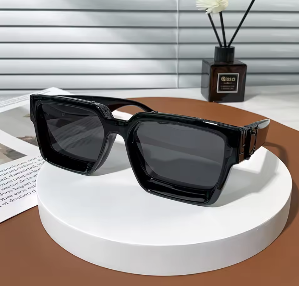 Ge din look en rejäl dos attityd med dessa trendiga och stilrena statementsolglasögon. Båda modellerna bjuder på en kraftig båge i modern form med hög modefaktor – perfekta för dig som vill sticka ut och skydda ögonen med stil. Den ena modellen har en fyrkantig retrodesign med heltäckande svarta bågar, medan den andra kombinerar en skarp oversized form med gradientlins och en dekorativ stjärndetalj i mitten som drar blickarna till sig. Oavsett vilken du väljer är du redo för både stad och strand i sommar!