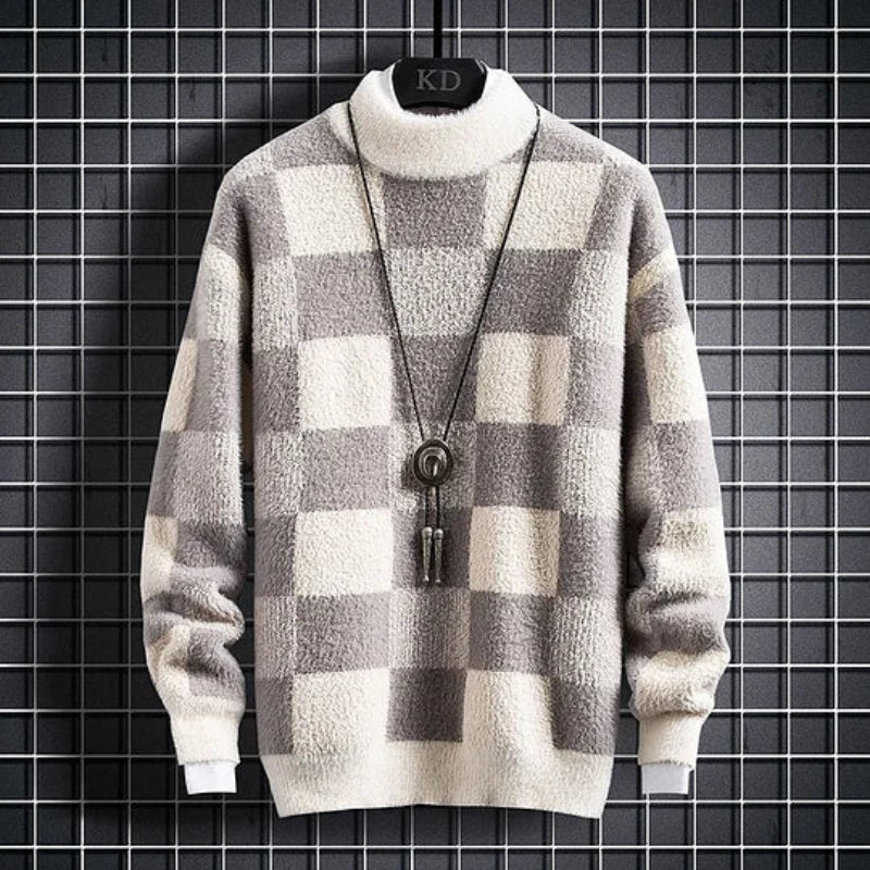 Rutmönstrad Tröja Med Hög Krage För Herr | Perfekt för Höst/Vinter