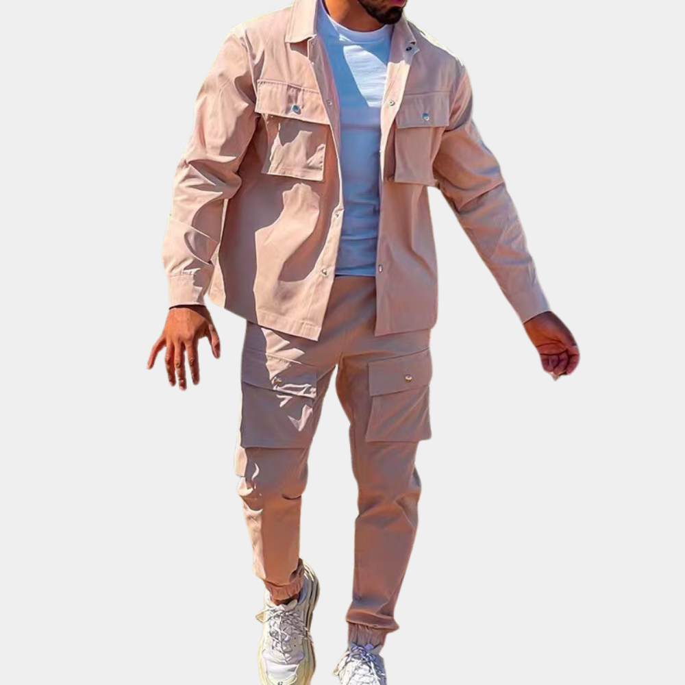 Zlatan tvådelad cargodräkt är skapad för män som uppskattar både stil och funktion. Med sitt slitstarka material och smarta design passar den lika bra för vardagsbruk som för utomhusaktiviteter. De praktiska fickorna gör det enkelt att ha viktiga saker nära till hands.