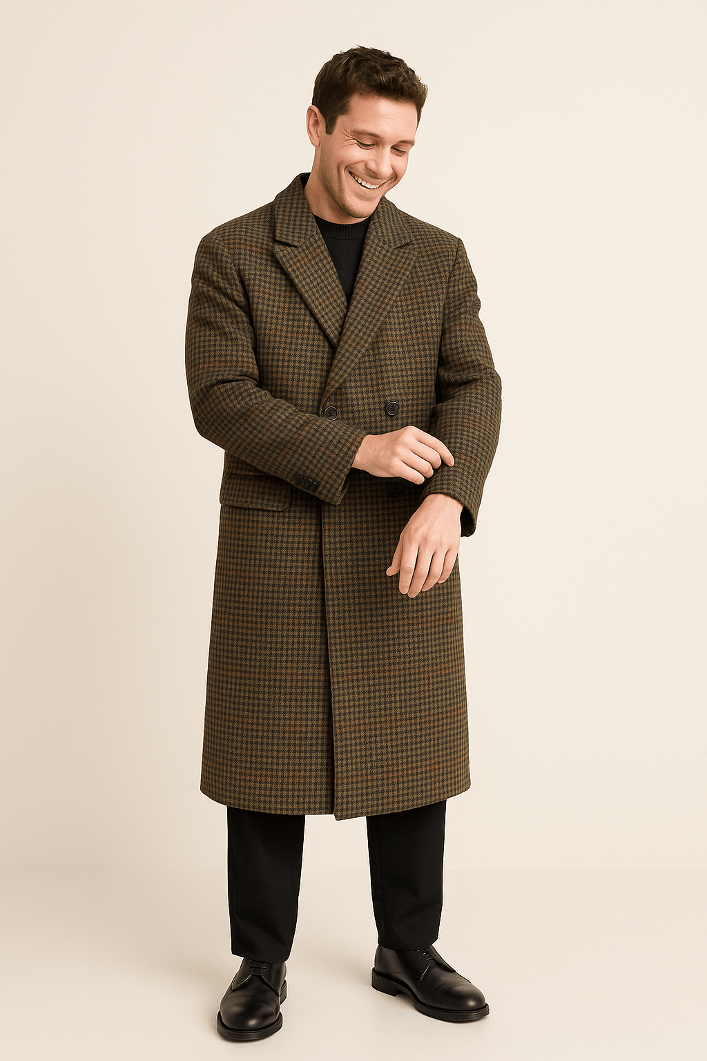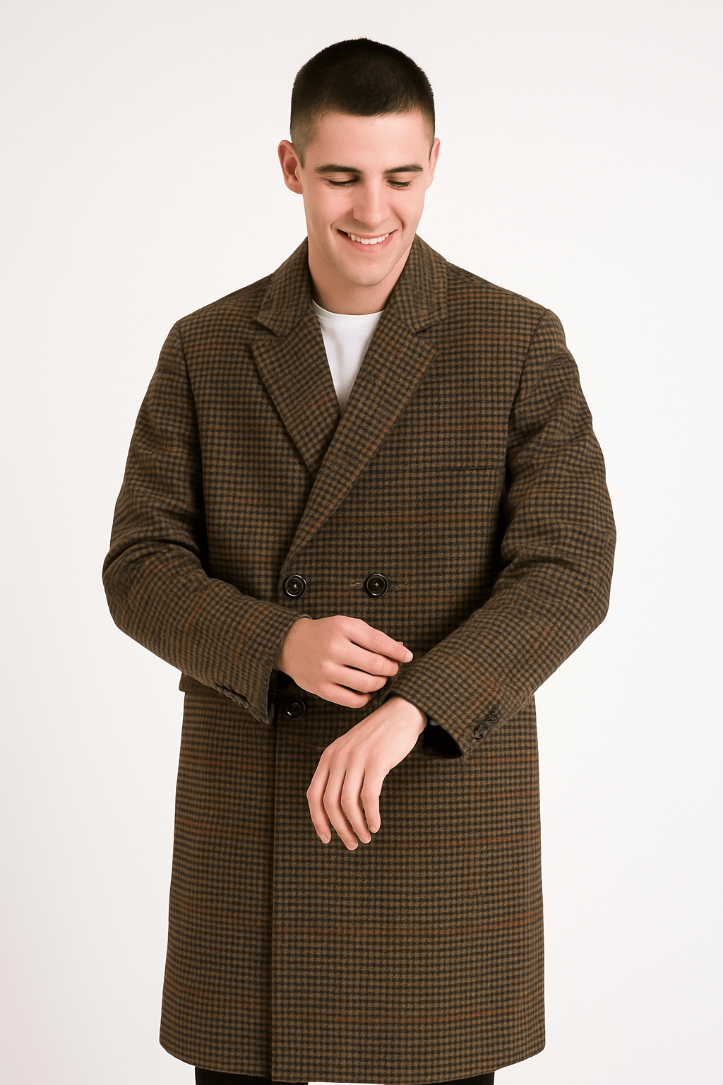 Den dubbelknäppta rutkappan Caleb är det perfekta tillskottet till din vintergarderob. Den kombinerar ett tätt tyg med ett tidlöst rutmönster och erbjuder både värme och elegant stil.