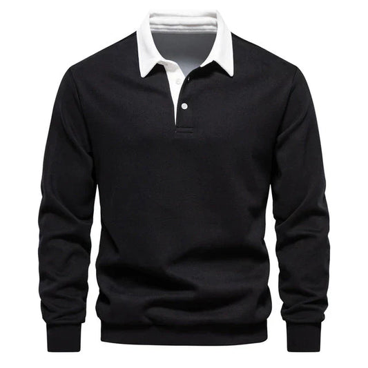 Mäns Långärmad Poloshirt Klassisk Krage Bomull