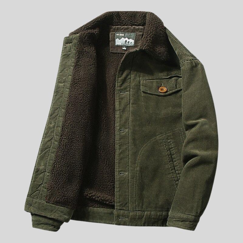 Upplev komfort och stil med denna manchester herrjacka, sherpafodrad för att hålla dig varm när temperaturen sjunker. Jackans klassiska design kombinerat med sherpafodret gör det till en oslagbar kombo för höst och vinter.