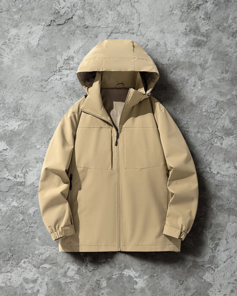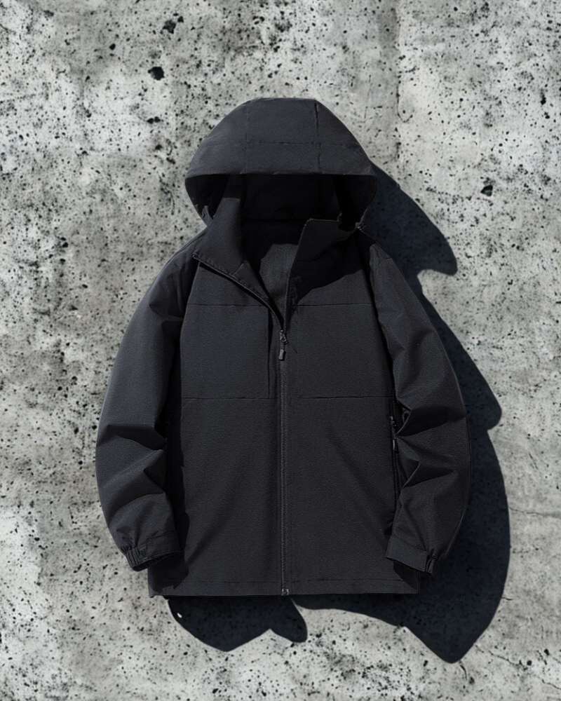 Herrjacka med huva – Avslappnad passform – Andningsfoder – Justerbara muddar – Flera fickor med dragkedja