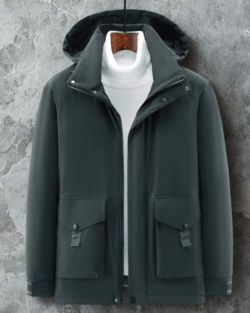 Herrjacka med huva – Mellanlång – Vadderad & Isolerad – Hög krage – Dragkedja & knappar