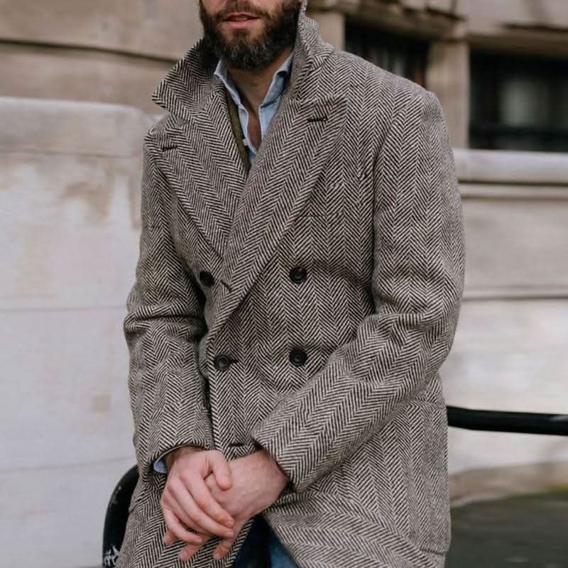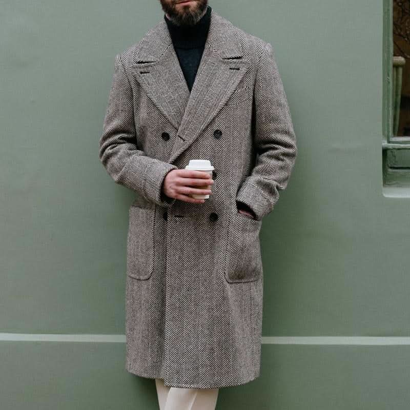 Herrrock - Dubbelknäppt Ullblandning - Mönster - Klassisk Lång Elegant Design