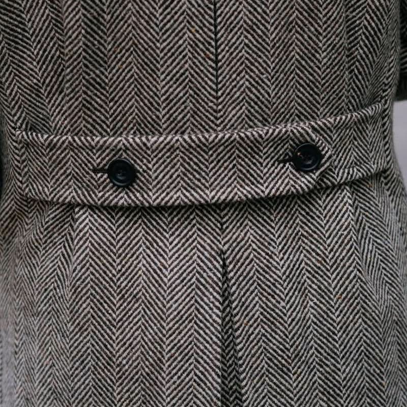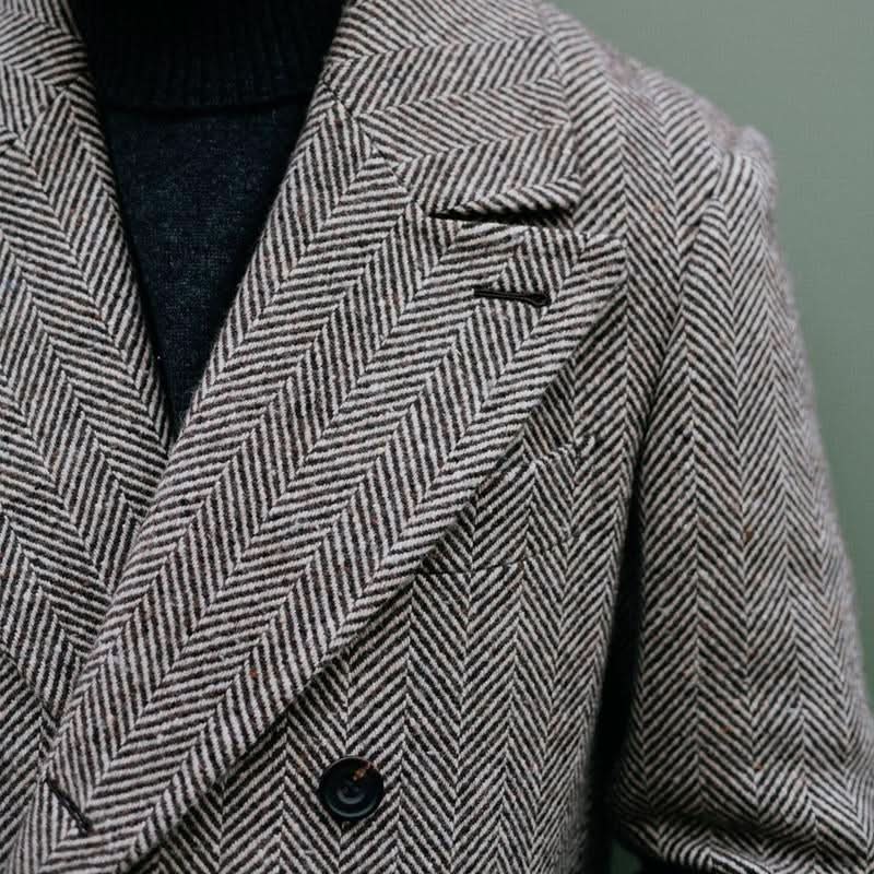 - Design: Dubbelknäppt, Herringbone mönster, Klassisk lång