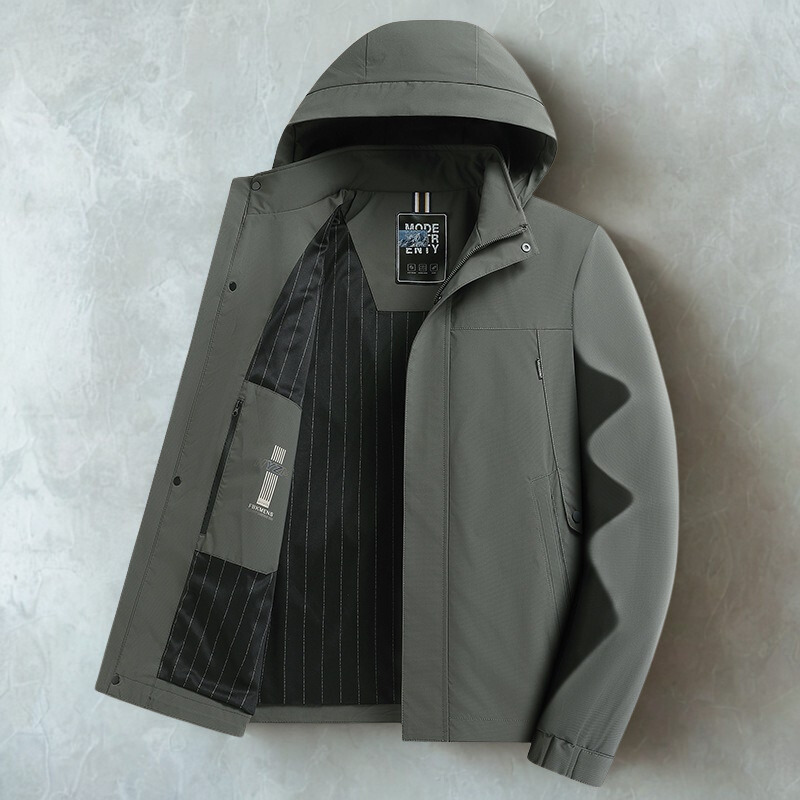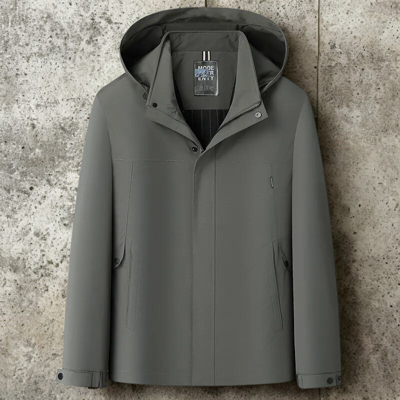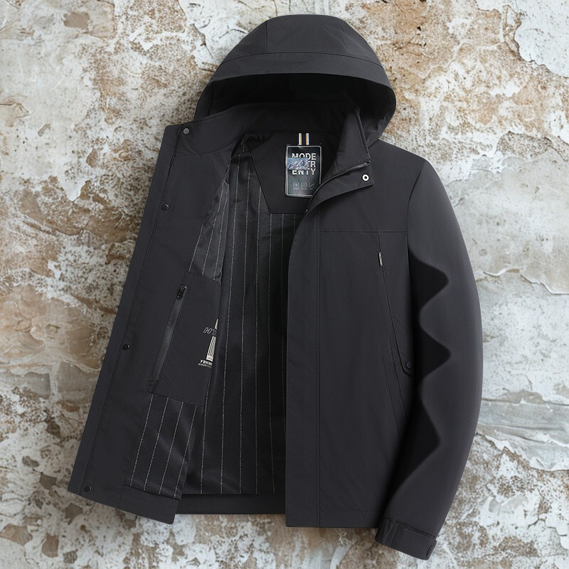 Herrjacka med huva – Avslappnad skräddad passform – Vind- och vattenavvisande – Hel dragkedja med stormklaff